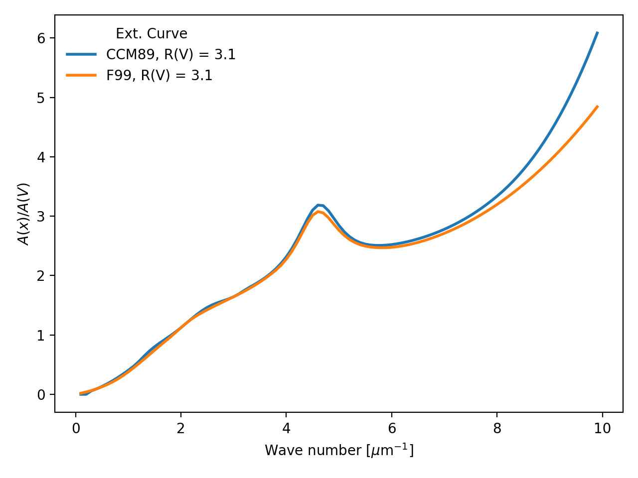 Note: dust_extinction assumes evaluation at wavenumbers, here in wavelengths.