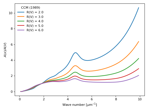 from Cardelli, Clayton, and Mathis (1989, ApJ, 345, 245)